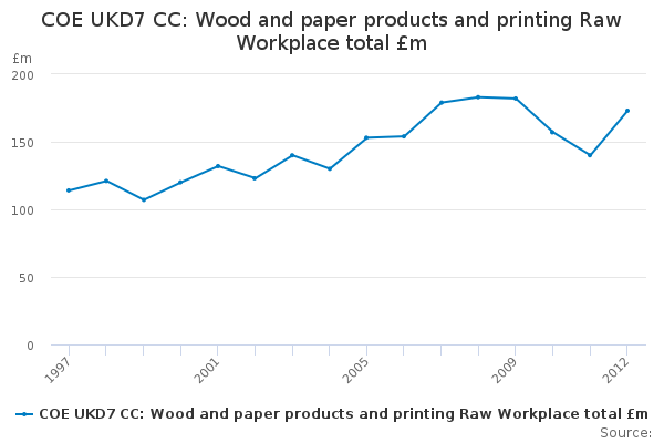 Download this time seriesCOE UKD7 CC: Wood and paper products and printing Raw Workplace total £m