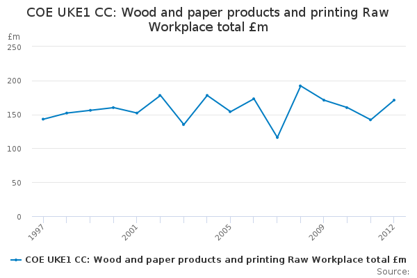 Download this time seriesCOE UKE1 CC: Wood and paper products and printing Raw Workplace total £m