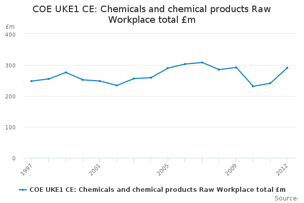 Download this time seriesCOE UKE1 CE: Chemicals and chemical products Raw Workplace total £m