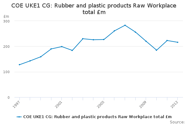 Download this time seriesCOE UKE1 CG: Rubber and plastic products Raw Workplace total £m