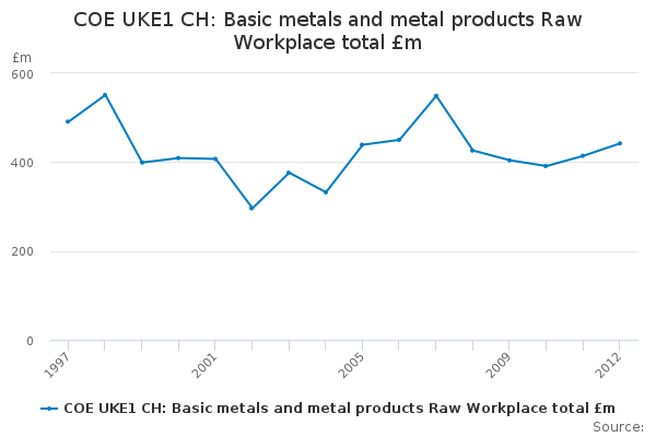Download this time seriesCOE UKE1 CH: Basic metals and metal products Raw Workplace total £m