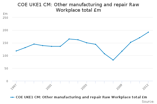 Download this time seriesCOE UKE1 CM: Other manufacturing and repair Raw Workplace total £m