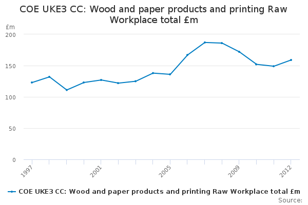 Download this time seriesCOE UKE3 CC: Wood and paper products and printing Raw Workplace total £m