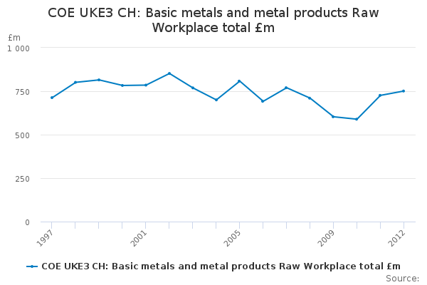 Download this time seriesCOE UKE3 CH: Basic metals and metal products Raw Workplace total £m