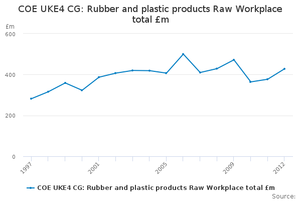 Download this time seriesCOE UKE4 CG: Rubber and plastic products Raw Workplace total £m