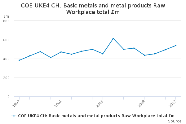 Download this time seriesCOE UKE4 CH: Basic metals and metal products Raw Workplace total £m