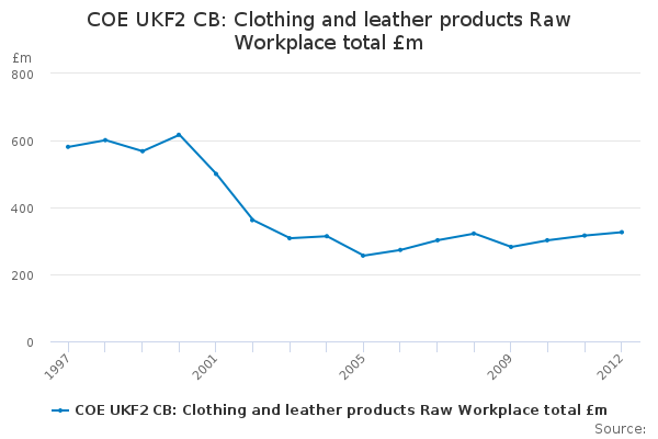 Download this time seriesCOE UKF2 CB: Clothing and leather products Raw Workplace total £m