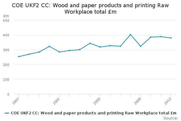 Download this time seriesCOE UKF2 CC: Wood and paper products and printing Raw Workplace total £m