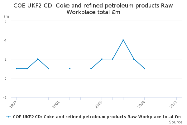 Download this time seriesCOE UKF2 CD: Coke and refined petroleum products Raw Workplace total £m