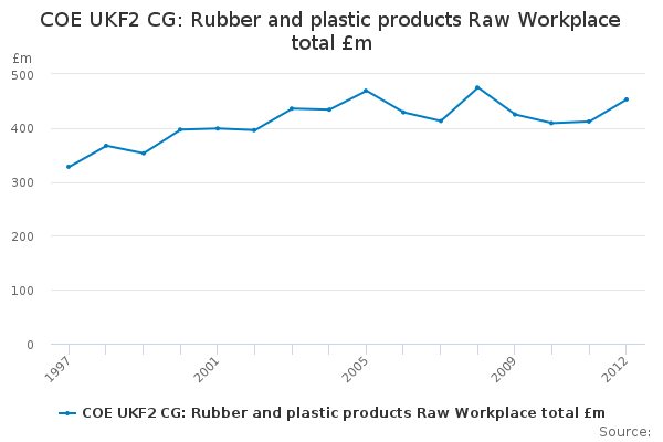 Download this time seriesCOE UKF2 CG: Rubber and plastic products Raw Workplace total £m