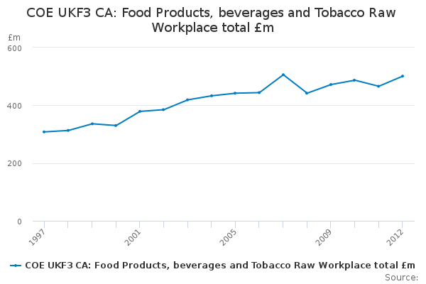 Download this time seriesCOE UKF3 CA: Food Products, beverages and Tobacco Raw Workplace total £m