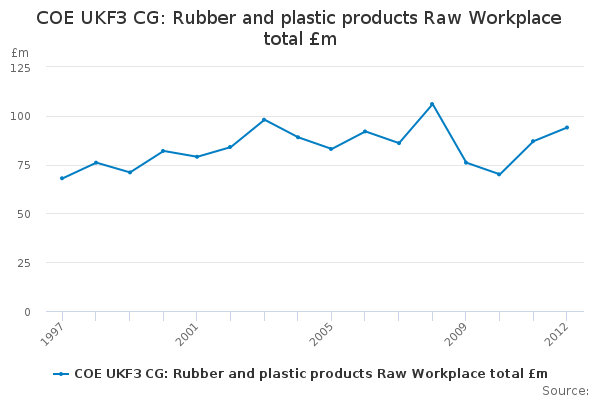 Download this time seriesCOE UKF3 CG: Rubber and plastic products Raw Workplace total £m
