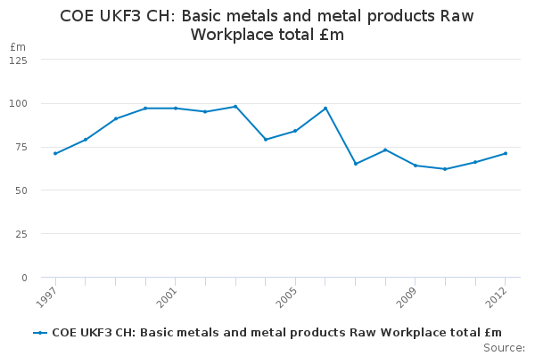 Download this time seriesCOE UKF3 CH: Basic metals and metal products Raw Workplace total £m
