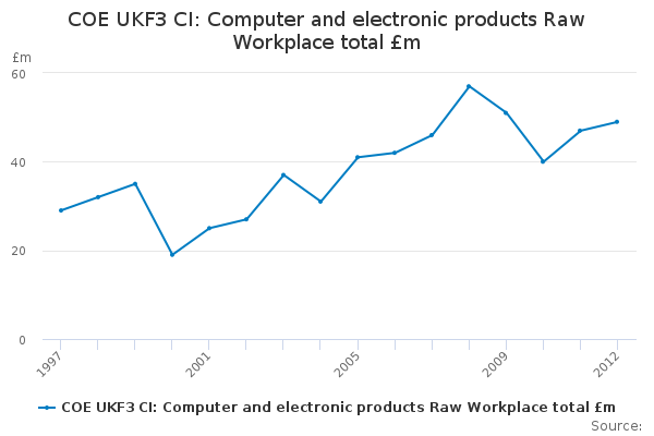 Download this time seriesCOE UKF3 CI: Computer and electronic products Raw Workplace total £m