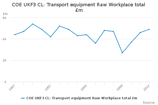 Download this time seriesCOE UKF3 CL: Transport equipment Raw Workplace total £m