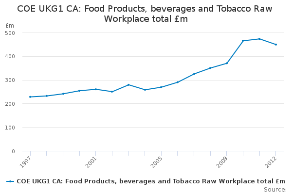 Download this time seriesCOE UKG1 CA: Food Products, beverages and Tobacco Raw Workplace total £m
