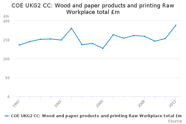 Download this time seriesCOE UKG2 CC: Wood and paper products and printing Raw Workplace total £m