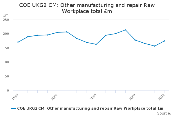 Download this time seriesCOE UKG2 CM: Other manufacturing and repair Raw Workplace total £m