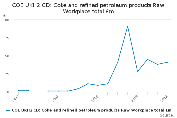 Download this time seriesCOE UKH2 CD: Coke and refined petroleum products Raw Workplace total £m