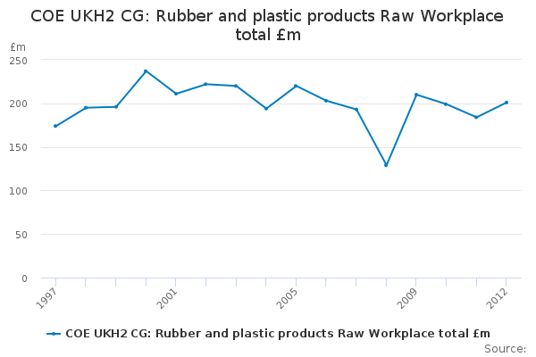 Download this time seriesCOE UKH2 CG: Rubber and plastic products Raw Workplace total £m