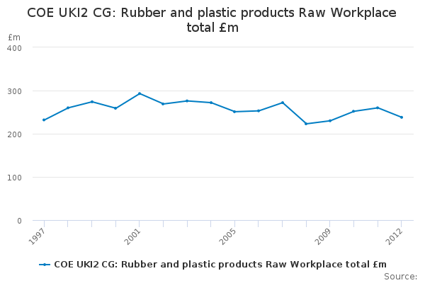 Download this time seriesCOE UKI2 CG: Rubber and plastic products Raw Workplace total £m