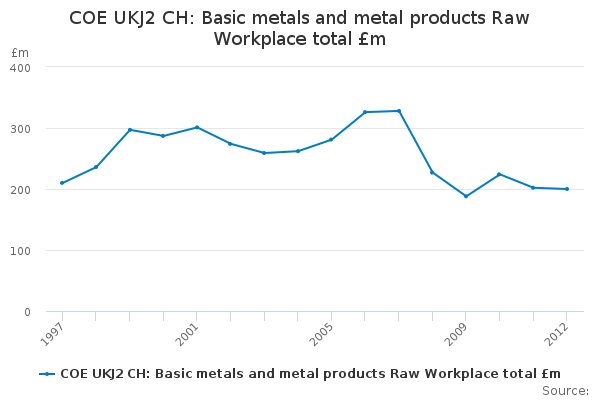 Download this time seriesCOE UKJ2 CH: Basic metals and metal products Raw Workplace total £m