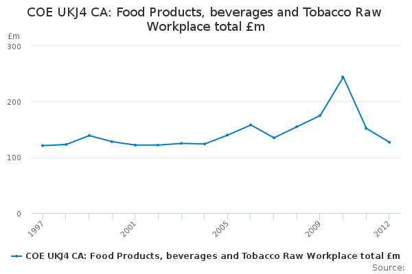 Download this time seriesCOE UKJ4 CA: Food Products, beverages and Tobacco Raw Workplace total £m