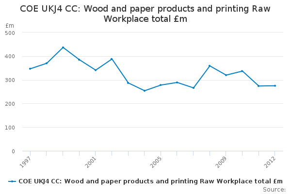Download this time seriesCOE UKJ4 CC: Wood and paper products and printing Raw Workplace total £m