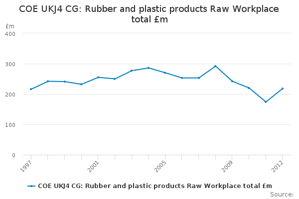 Download this time seriesCOE UKJ4 CG: Rubber and plastic products Raw Workplace total £m