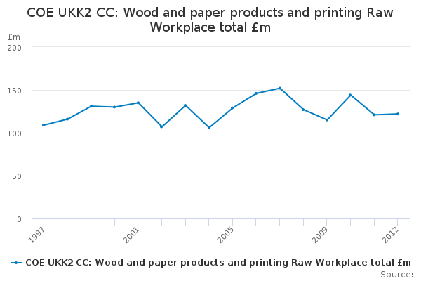 Download this time seriesCOE UKK2 CC: Wood and paper products and printing Raw Workplace total £m