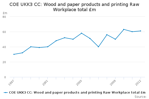 Download this time seriesCOE UKK3 CC: Wood and paper products and printing Raw Workplace total £m