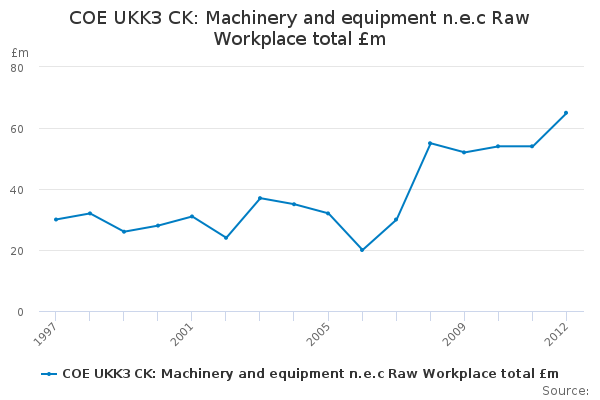 Download this time seriesCOE UKK3 CK: Machinery and equipment n.e.c Raw Workplace total £m