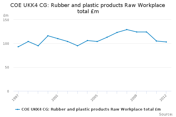 Download this time seriesCOE UKK4 CG: Rubber and plastic products Raw Workplace total £m