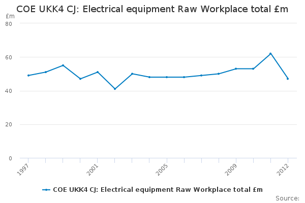 Download this time seriesCOE UKK4 CJ: Electrical equipment Raw Workplace total £m