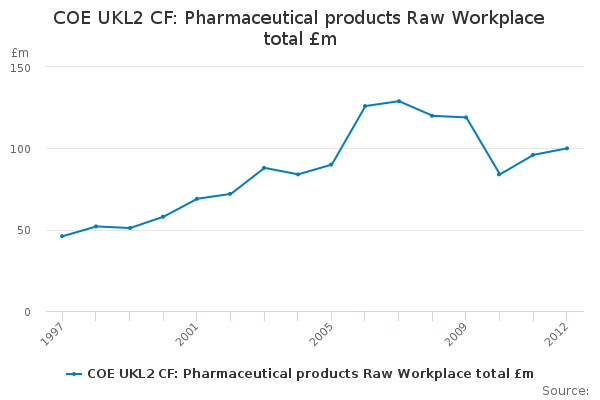 Download this time seriesCOE UKL2 CF: Pharmaceutical products Raw Workplace total £m