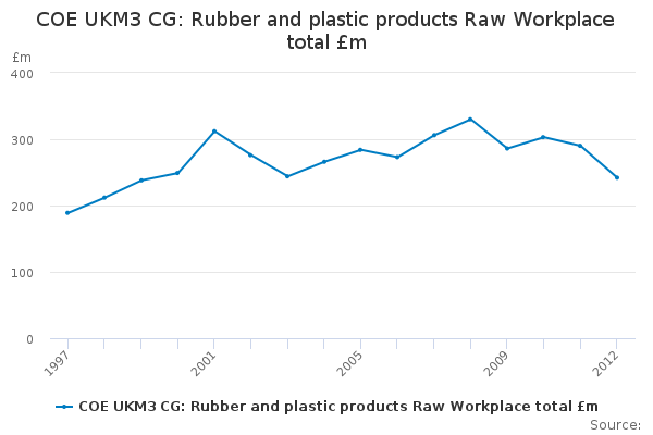 Download this time seriesCOE UKM3 CG: Rubber and plastic products Raw Workplace total £m