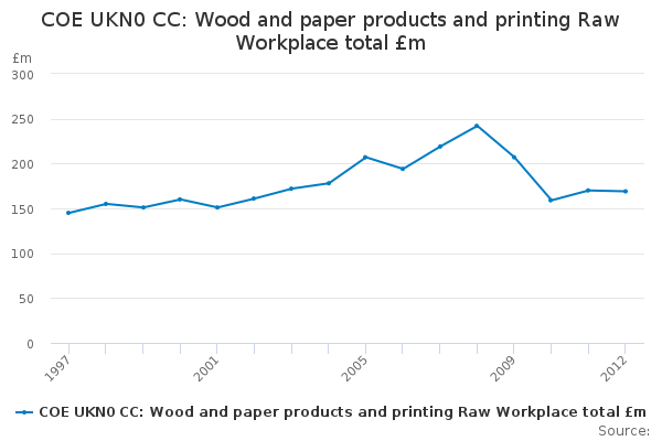 Download this time seriesCOE UKN0 CC: Wood and paper products and printing Raw Workplace total £m