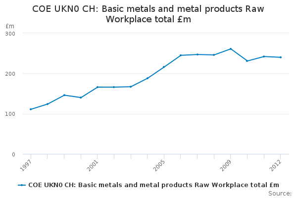 Download this time seriesCOE UKN0 CH: Basic metals and metal products Raw Workplace total £m