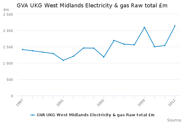 Download this time seriesGVA UKG West Midlands Electricity & gas Raw total £m