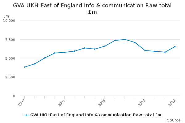Download this time seriesGVA UKH East of England Info & communication Raw total £m