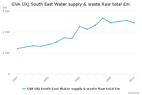 Download this time seriesGVA UKJ South East Water supply & waste Raw total £m