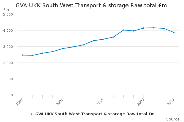 Download this time seriesGVA UKK South West Transport & storage Raw total £m