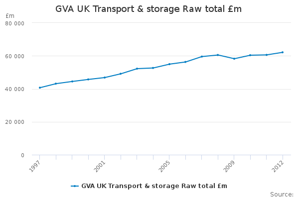 Download this time seriesGVA UK Transport & storage Raw total £m