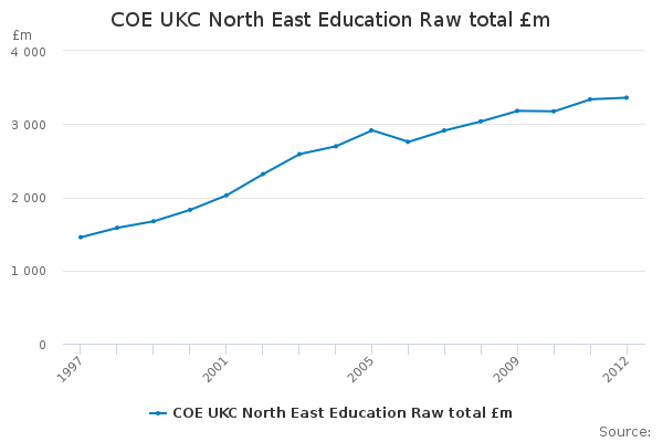 Download this time seriesCOE UKC North East Education Raw total £m