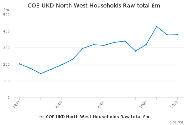 Download this time seriesCOE UKD North West Households Raw total £m