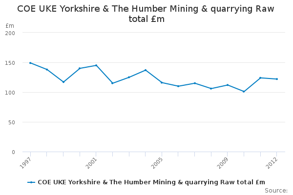 Download this time seriesCOE UKE Yorkshire & The Humber Mining & quarrying Raw total £m