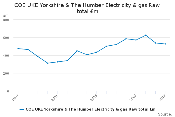 Download this time seriesCOE UKE Yorkshire & The Humber Electricity & gas Raw total £m