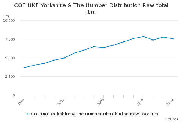 Download this time seriesCOE UKE Yorkshire & The Humber Distribution Raw total £m