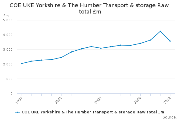 Download this time seriesCOE UKE Yorkshire & The Humber Transport & storage Raw total £m