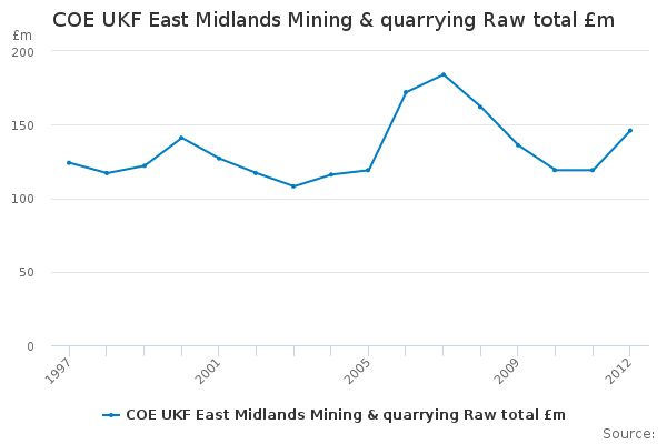 Download this time seriesCOE UKF East Midlands Mining & quarrying Raw total £m